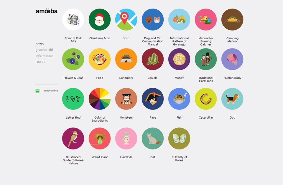구성 또한 크레딧카드를 나열한 듯한 뉴스 컨텐츠와 원으로 뱃지를 나열한 듯한 그래픽 디비 컨텐츠는 보는 이를 즐겁게 한다.