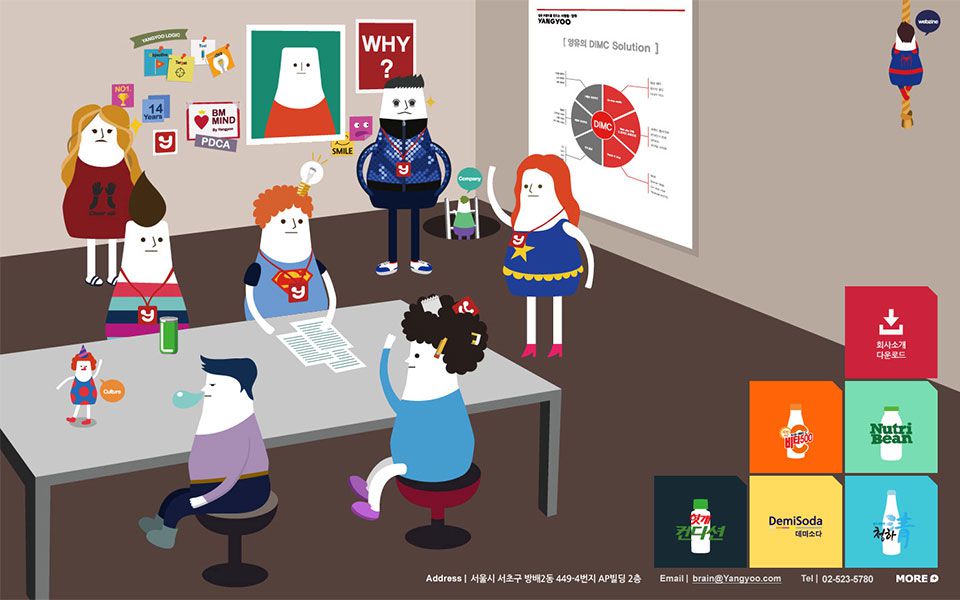 자유 형식의 레이아웃에 플랫하게 디자인한 일러스트들로 디자인된 사이트이다.