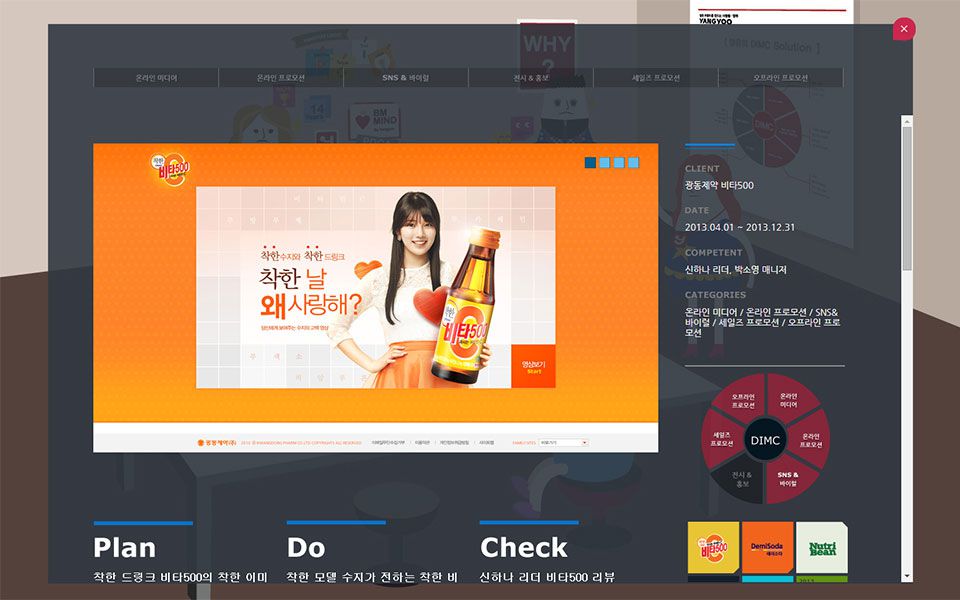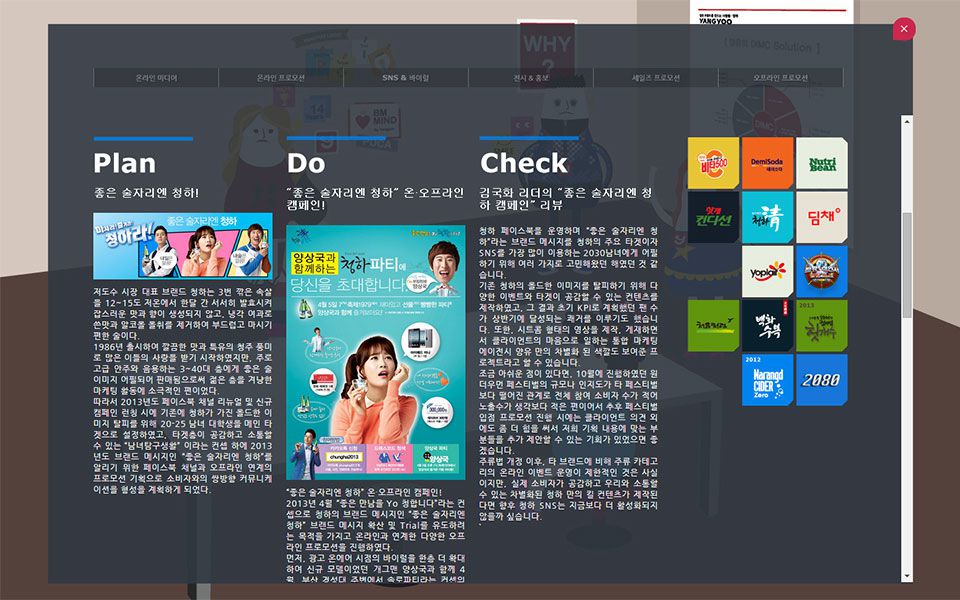 몇개의 프로젝트를 쌓여진 박스 형태로 두었고, 워드프레스 기반의 기능으로 등록된 정보들이 노출되고 있다.