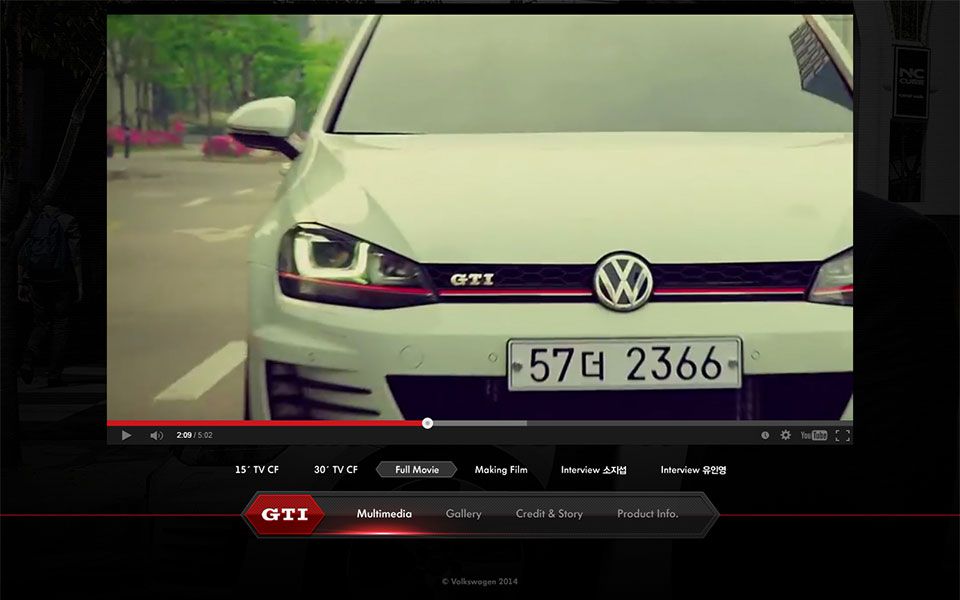 GTI 영상을 주제로 만들어진 사이트로 영상, 갤러리, 제작진등과 같은 정보를 볼 수있다.