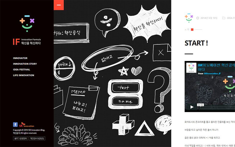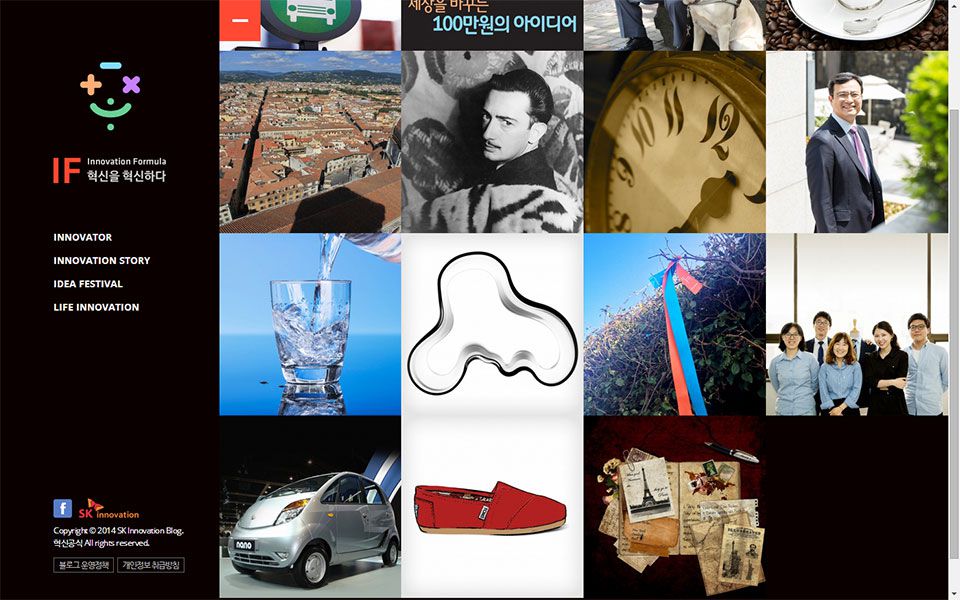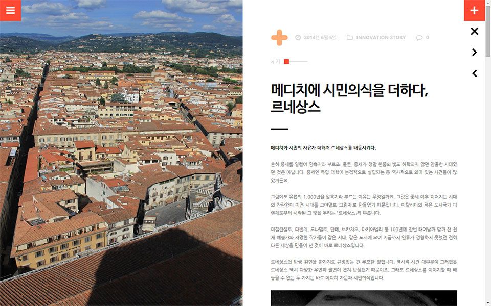 워드프레스 기반으로 만들어진 독특한 레이아웃을 가지고 있다.