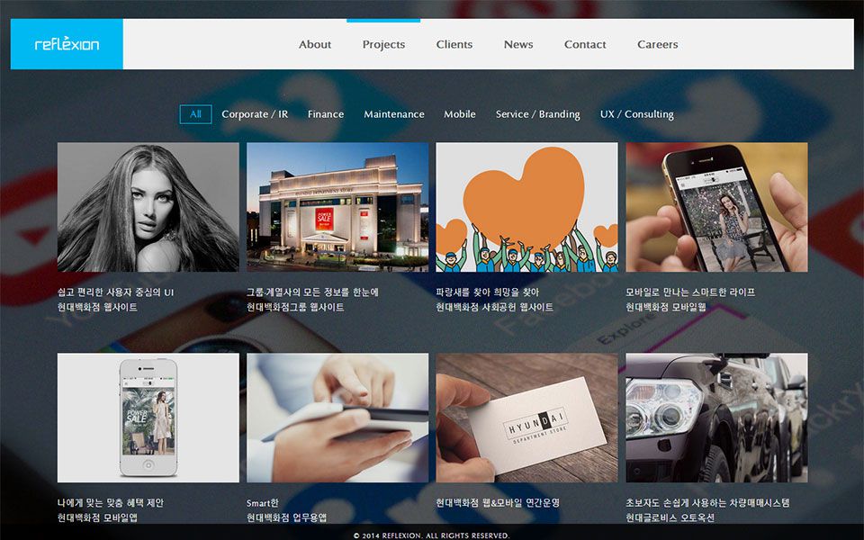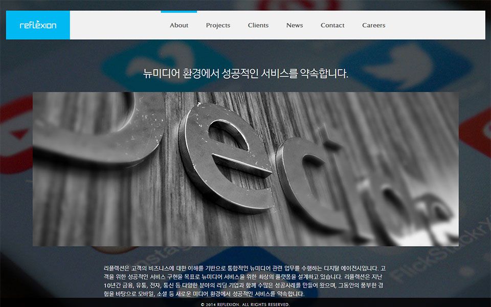 에이전시의 크리에이티브를 담은 심플하면서도 개성이 돋보이는 사이트이다.