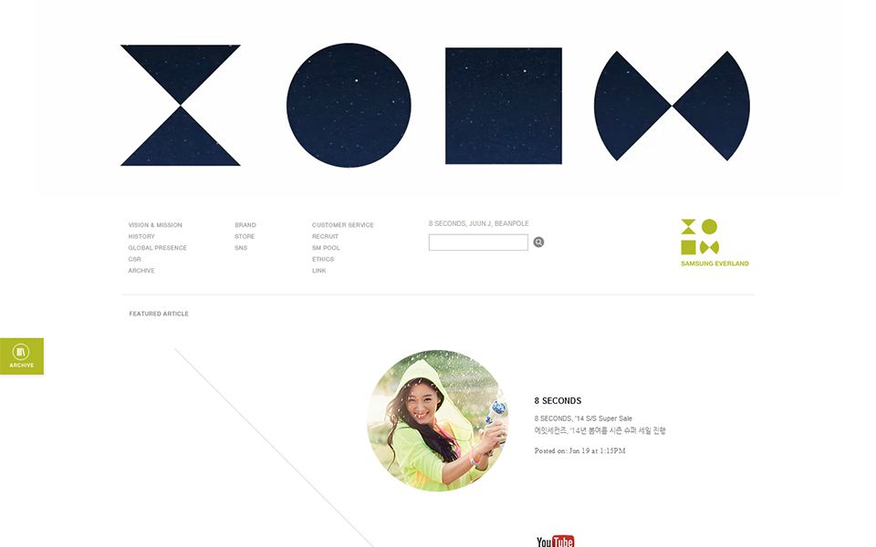 인트로에서 영상이 디자인 철학을 나타내듯 보여지고 컨셉이 유지된 상태로 메인과 서브의 컨텐츠 요소에 조금씩 반영되고 있다.