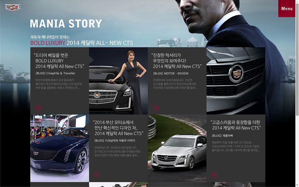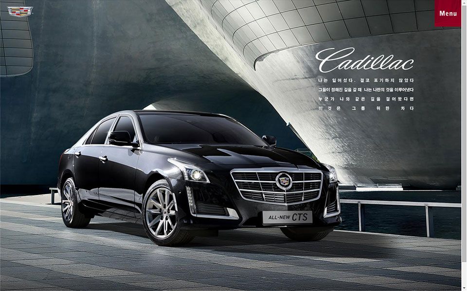 자동차 프로모션 사이트로 대형의 사진을 배경으로 하고 우측 상단에 메뉴를 모바일 UI처럼 만들었다.