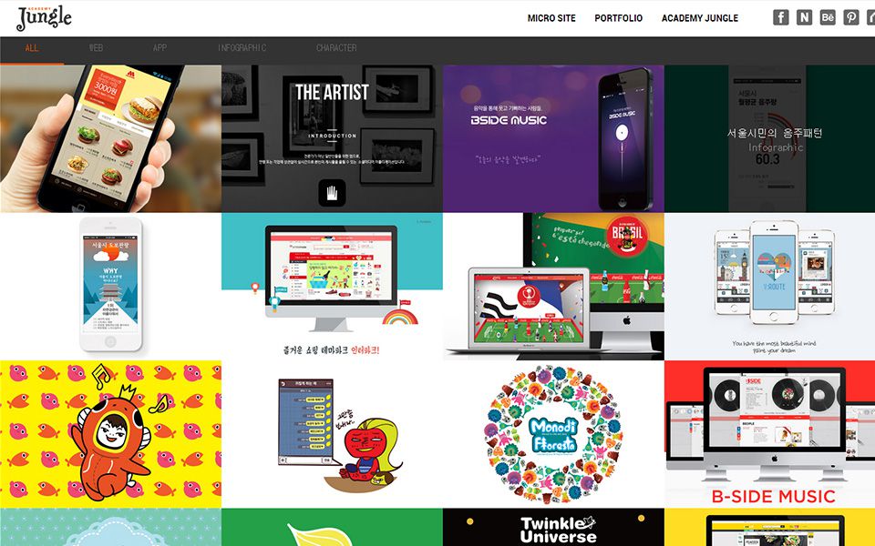 주 색상은 각 세션별로 다르게 주어졌으며 플랫한 디자인 요소들로 심플해 보이게 표현되었다.