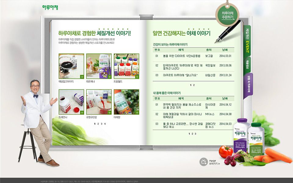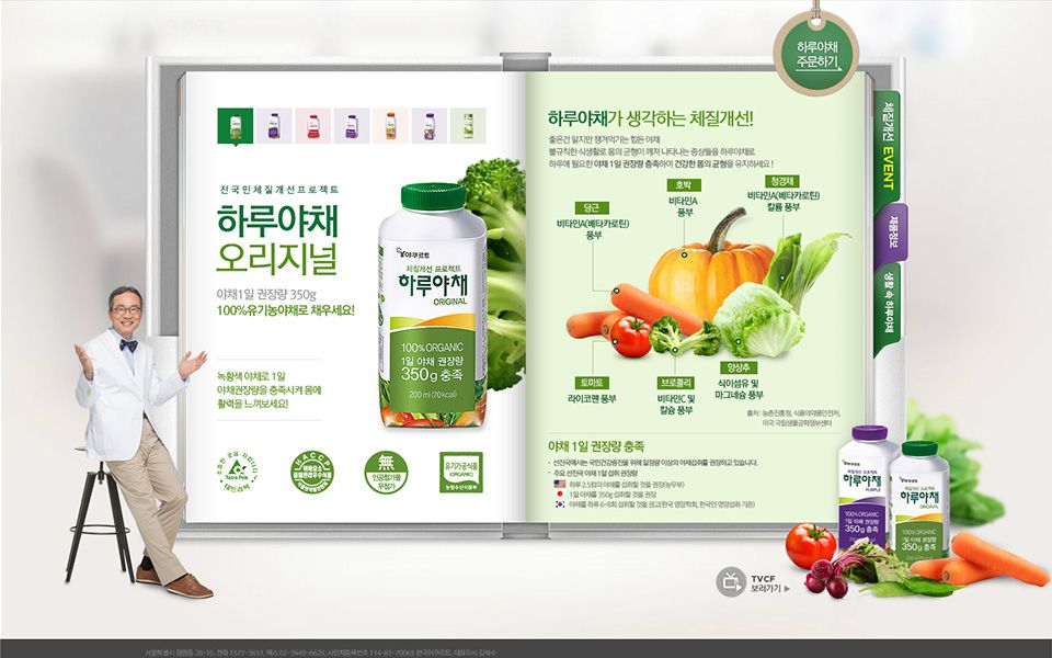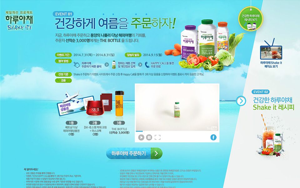야채와 자연을 표현하는 초록색을 주로 사용하였고 프로모션 페이지에서는 여름 이벤트를 진행하면서 파란 계열을 주로 사용하였다.