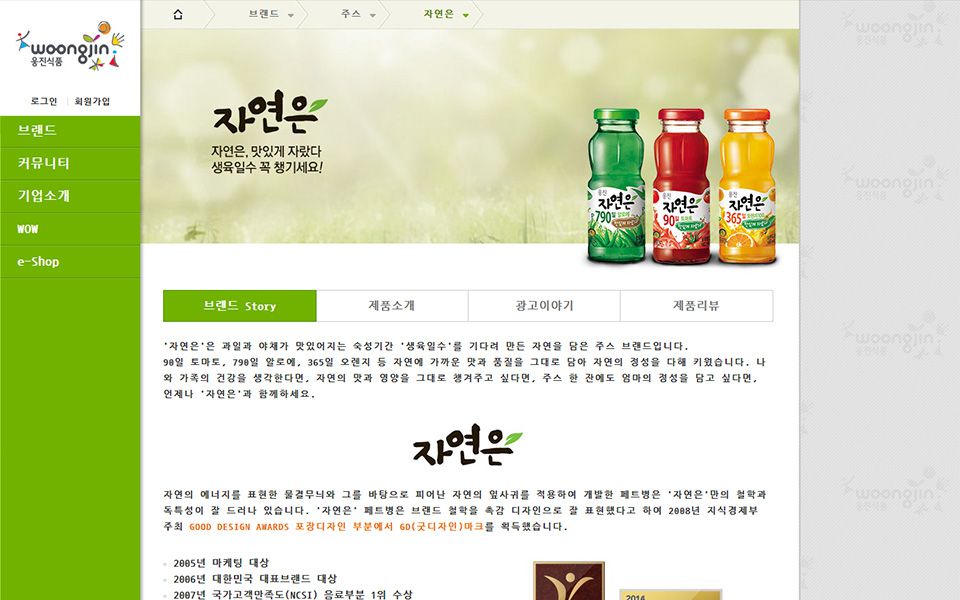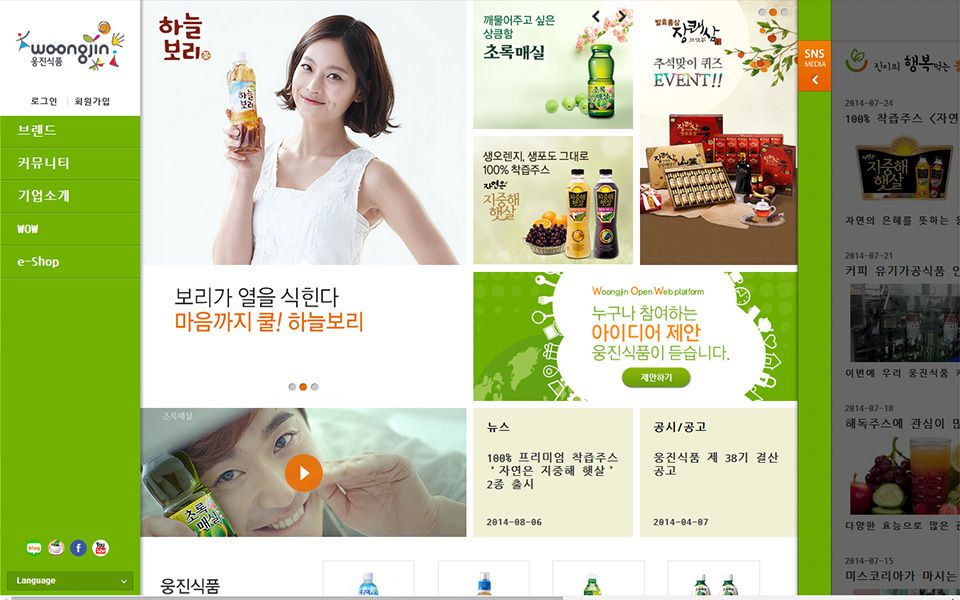 주색상은 초록색을 사용하였고 포인트로 주황색을 사용하였다.