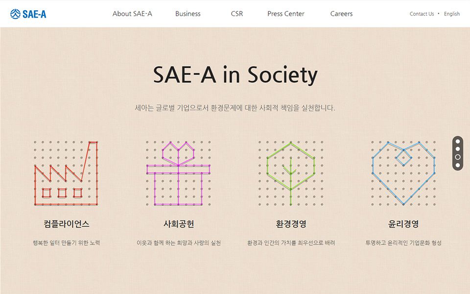 메인은 세로 슬라이드 형식으로 제작되었으며, 서브 페이지는 컨텐츠들이 플랫한 UI 활용과 웹폰트 사용으로 깔끔하게 정리되어 있다.