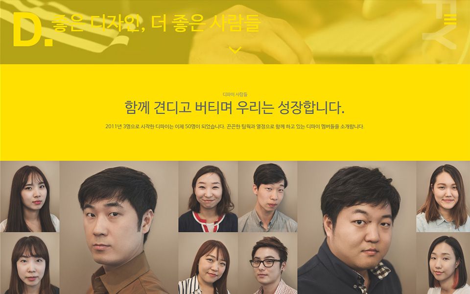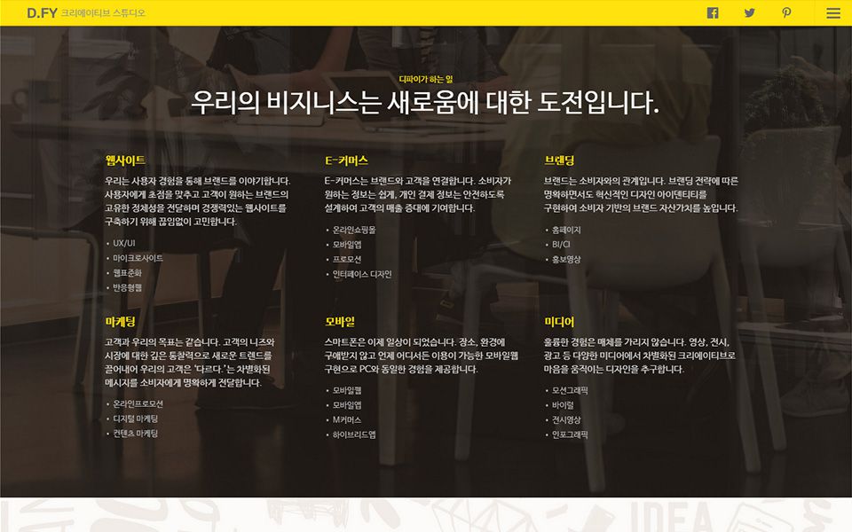 주색상인 노란색이 사이트 전체적으로 어울리게 디자인 되어있다.
