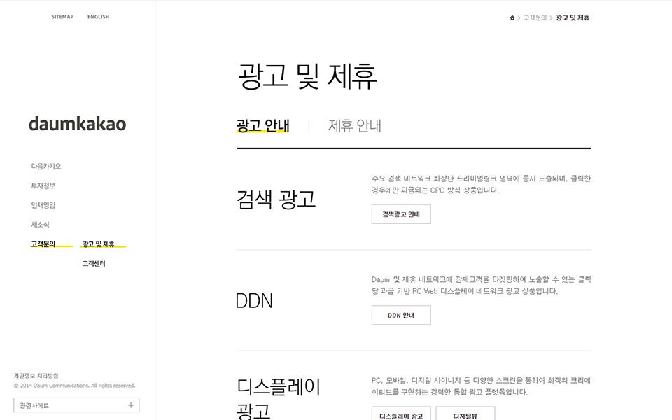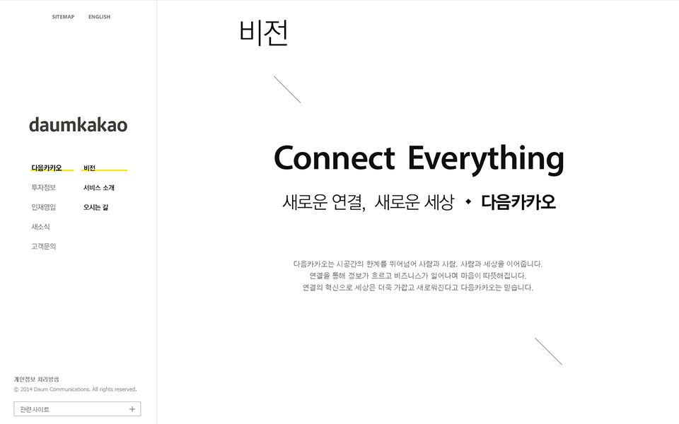 흰바탕에 텍스트와 박스 라인은 회색이고 포인트로 노란색을 사용하였다.