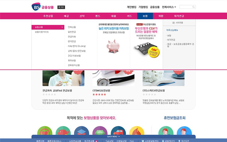 로고의 색인 분홍색과 파란색을 활용하여 사이트의 포인트 컬러로 사용되었다.