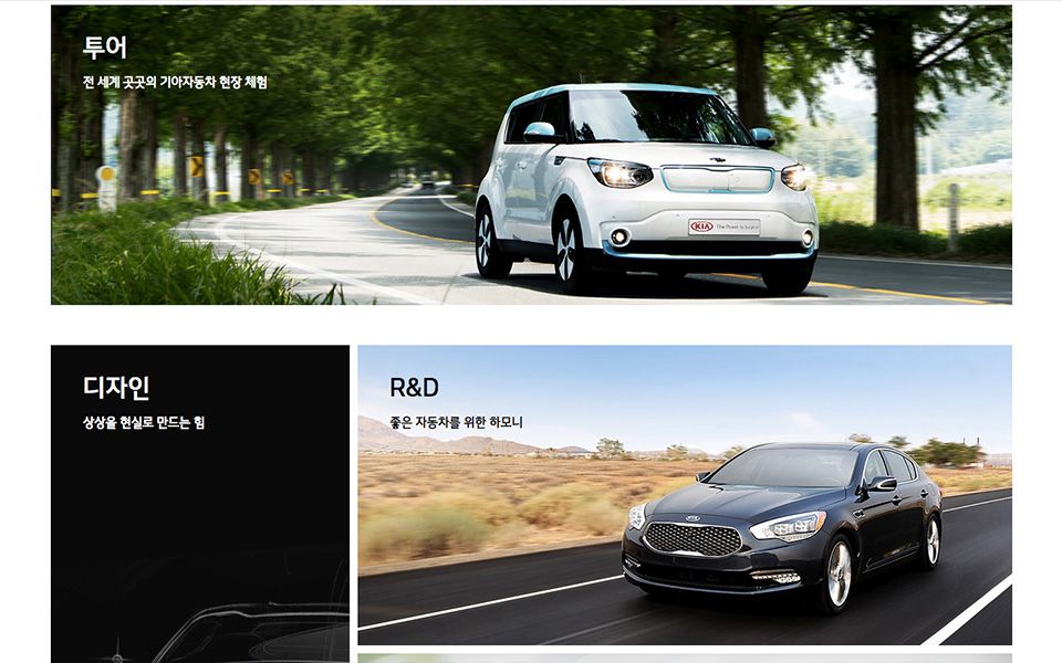 퀄리티 높은 사진들을 주 섹션의 배경으로 사용하여 그 위에 타이포그라피처럼 컨텐츠 또는 메뉴와 제목들을 멋스럽게 구성하였다.