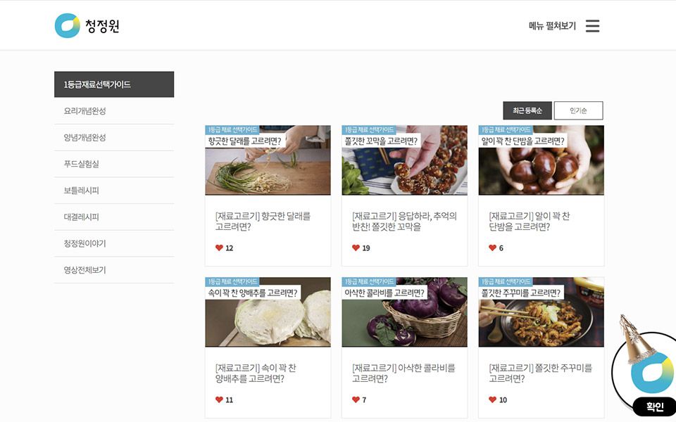 청정원 웹사이트, 웹디자인,?