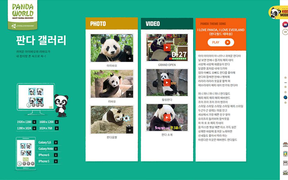 PANDA WORLD 에버랜드 판다월드 웹사이트, 웹디자인,?