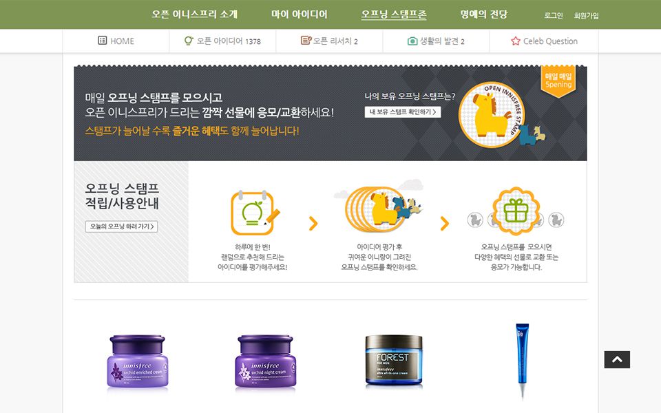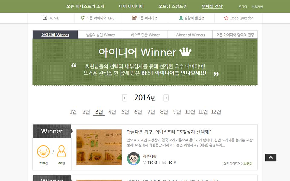 아이디어들을 3컬럼 그리드로, 상품은 4컬럼 그리드로 레이아웃 구성하였다.