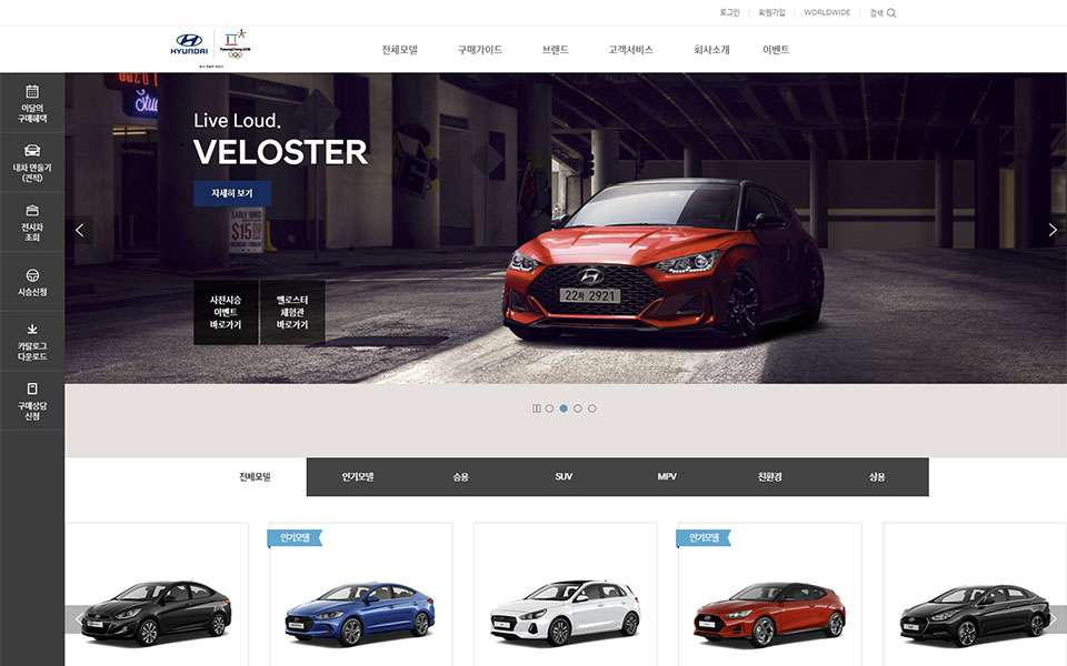현대 자동차 웹사이트, 웹디자인,
