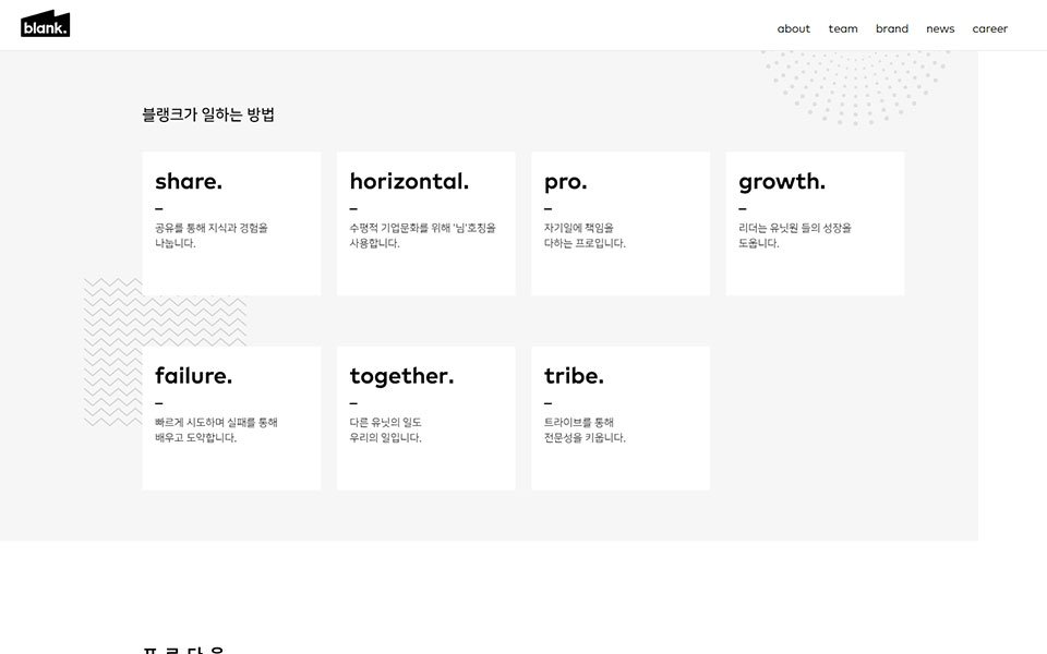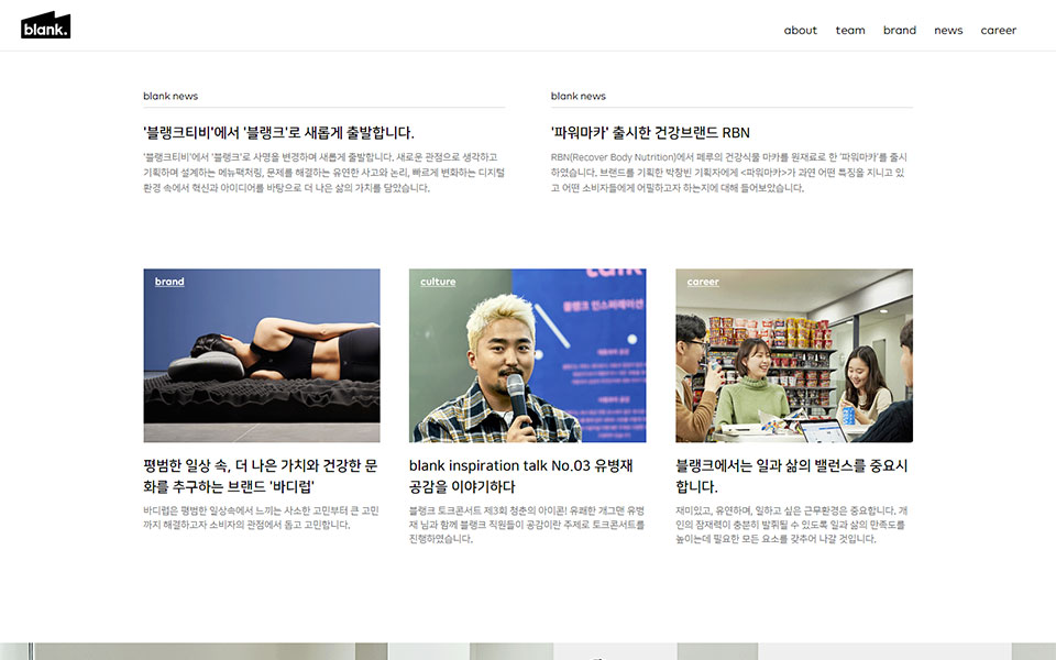 블랭크코퍼레이션 웹사이트, 웹디자인,