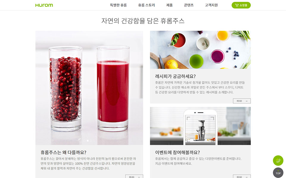 휴롬 공식 웹사이트, 웹디자인,
