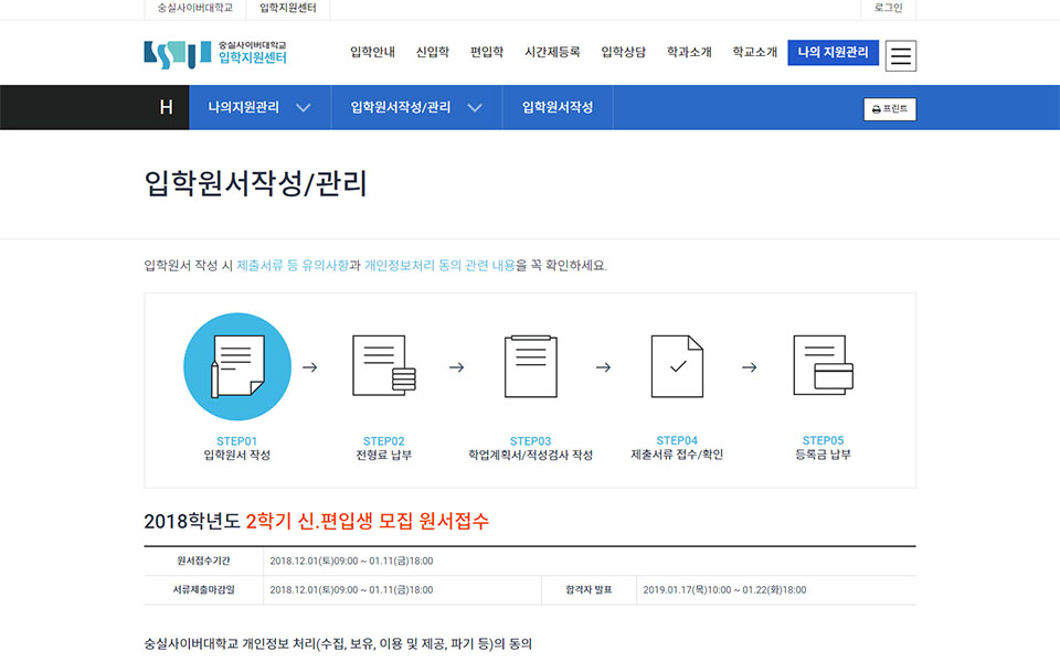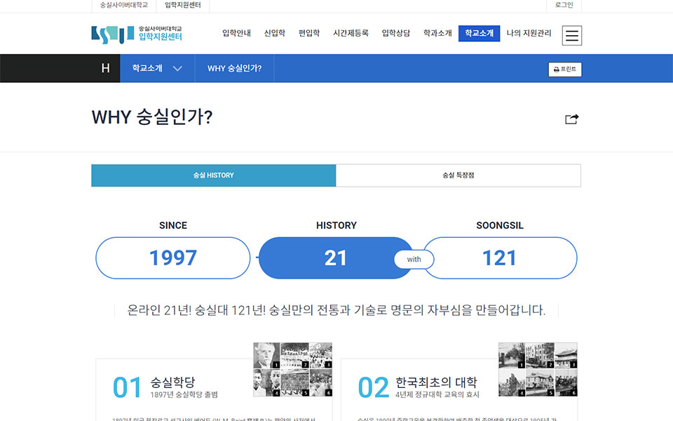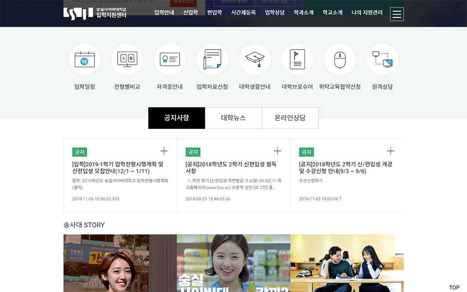숭실사이버대학교-입학지원센터 웹사이트, 웹디자인,