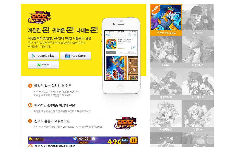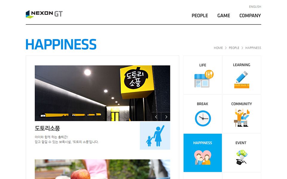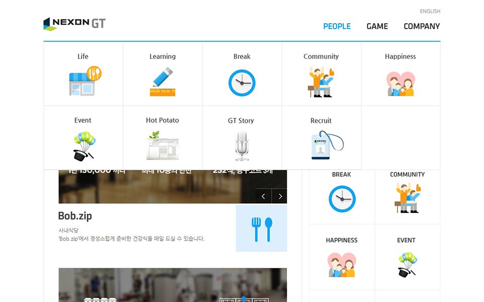 게임 회사의 성격과 맞게 동적인 요소들이 재미있게 연출되었다.