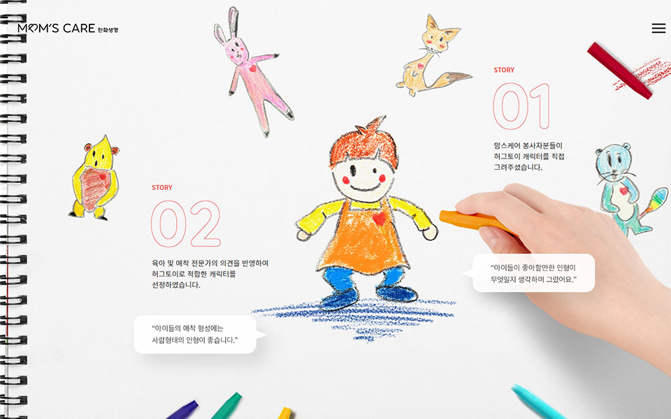 한화생명 맘스케어 웹사이트, 웹디자인,