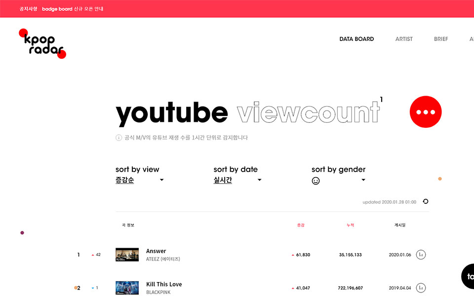 K-Pop Radar 케이팝 레이더 웹사이트, 웹디자인,