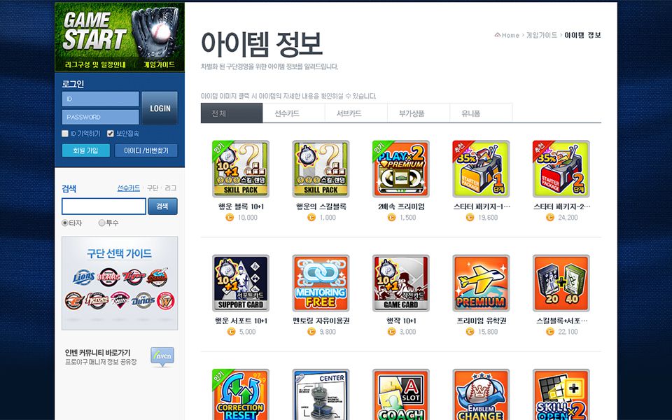 게임의 특징을 살려 야구와 관련된 배경이나 디자인 요소에 활용하였다.