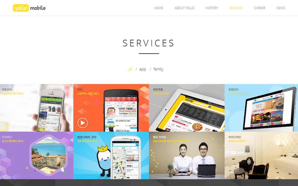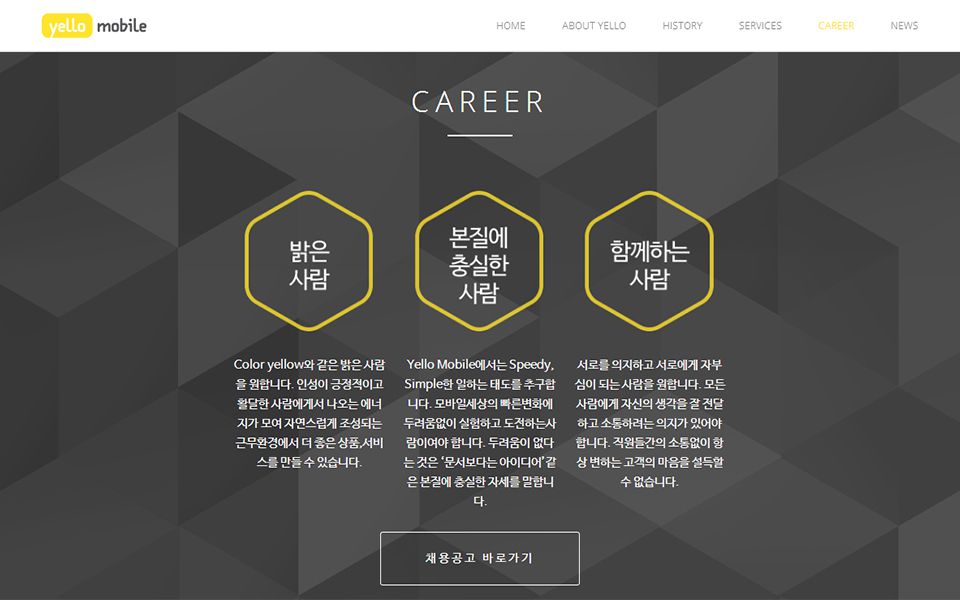 회사의 브랜드 네임을 활용하여 사이트에도 전체적으로 노란색을 사용하여 일관성 있는 스토리텔링을 보여주고 있다.