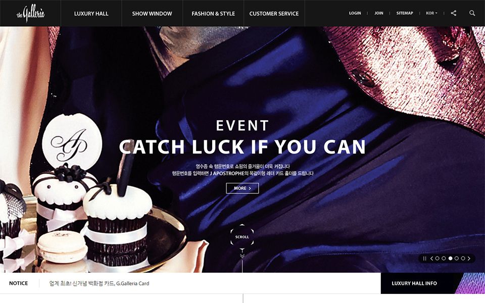 인트로에 들어서는 고급스러운 영상이 사이트의 분위기를 암시 시켜준다.