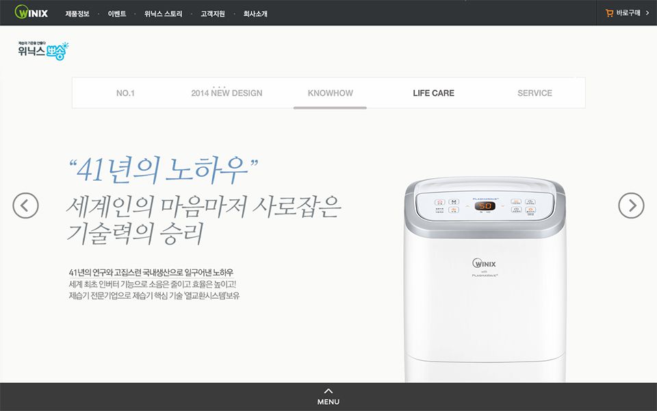 메인의 대형 동영상도 부담없이 이용하게 되고 각 페이지들의 사진들 제품의 외형처럼 심플하게 잘 구성하였다.