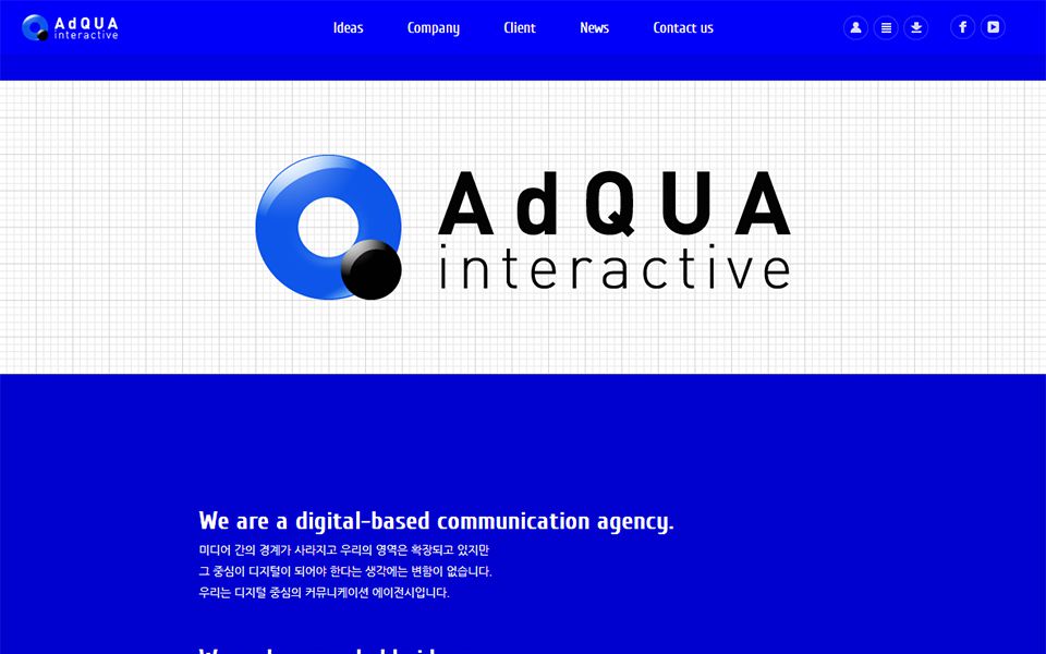 디지털 에이전시 애드쿠아 인터랙티브 사이트로 독특하면서 개성 넘치는 디자인으로 색상과 레이아웃이 되어있다.