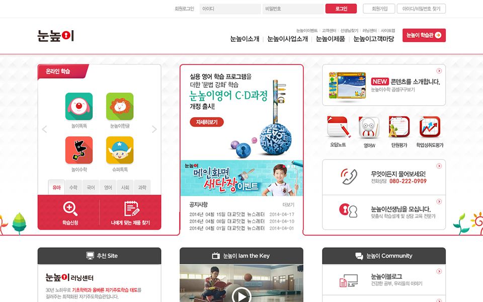 메인은 3단 레이아웃이고 서브에서는 2단으로 레이아웃 되어있다.
