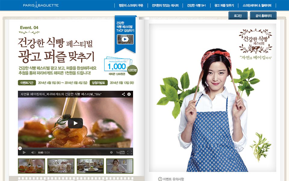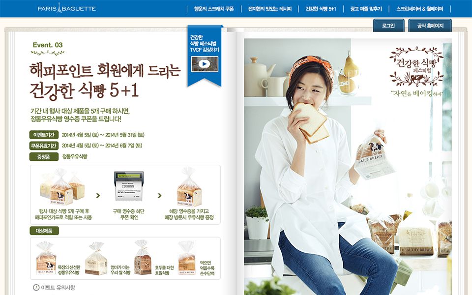 파리바게뜨에서 실시한 ‘건강한 식빵 페스티벌’ 프로모션 사이트이다.