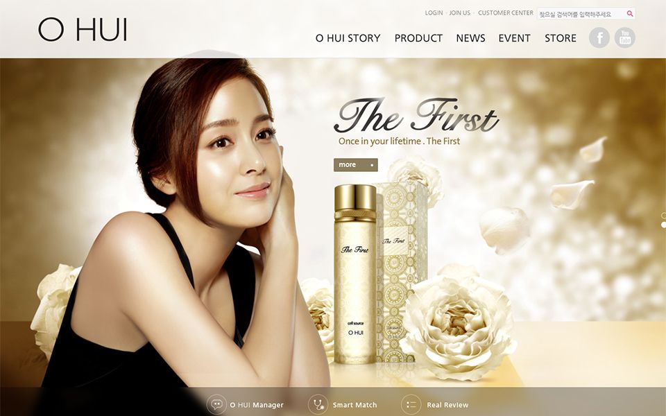 메인은 고품질 와이드 사진을 활용하여 제품과 모델을 노출하는 방식이다.