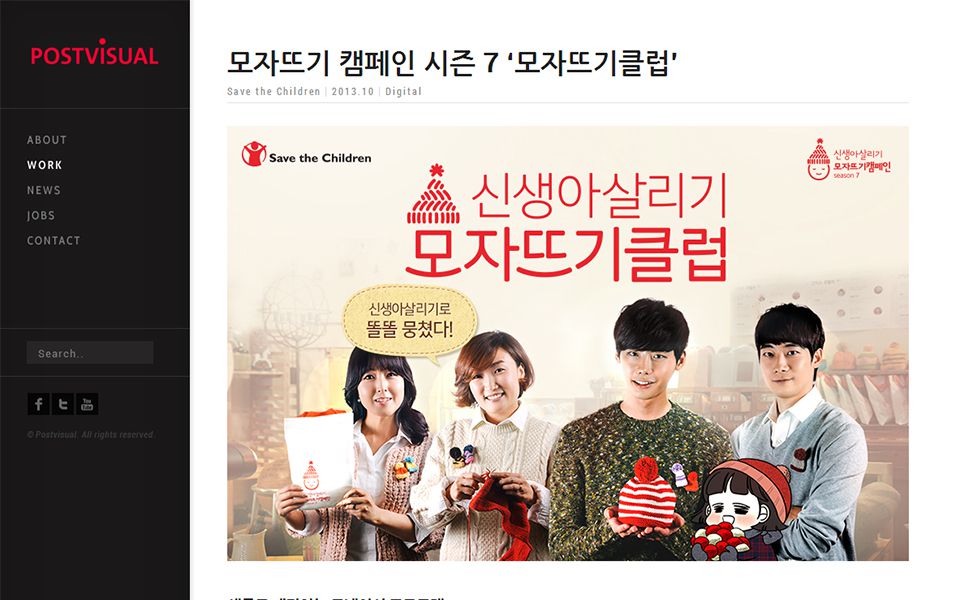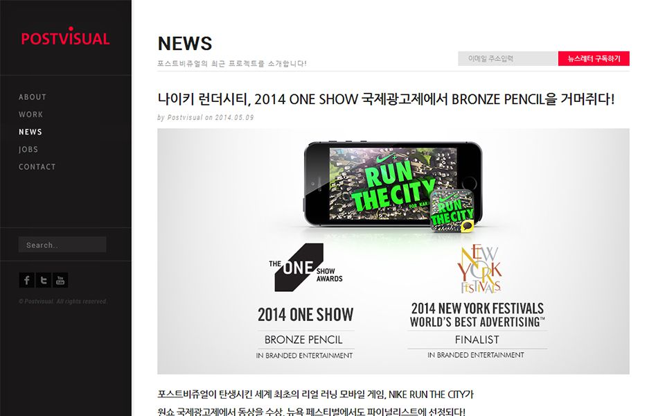짙은 회색과 흰색을 전경색으로 사용하였고 포인트 컬러로 빨간색을 사용하였다.